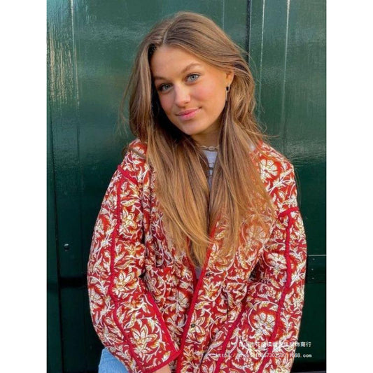 28% İndirimÇiçek Desenli Patchwork Kapitone Ceket