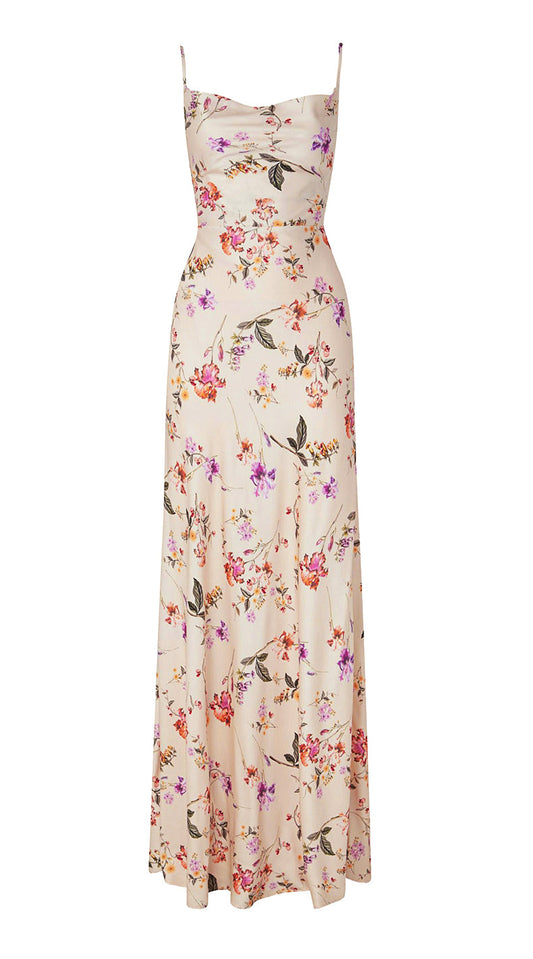 29% İndirimÇiçek Desenli Saten Maksi Elbise