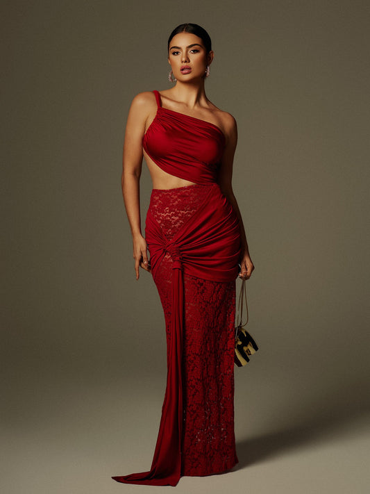 30% İndirimChristopher Tek Omuz Kesimli Dantel Maksi Elbise