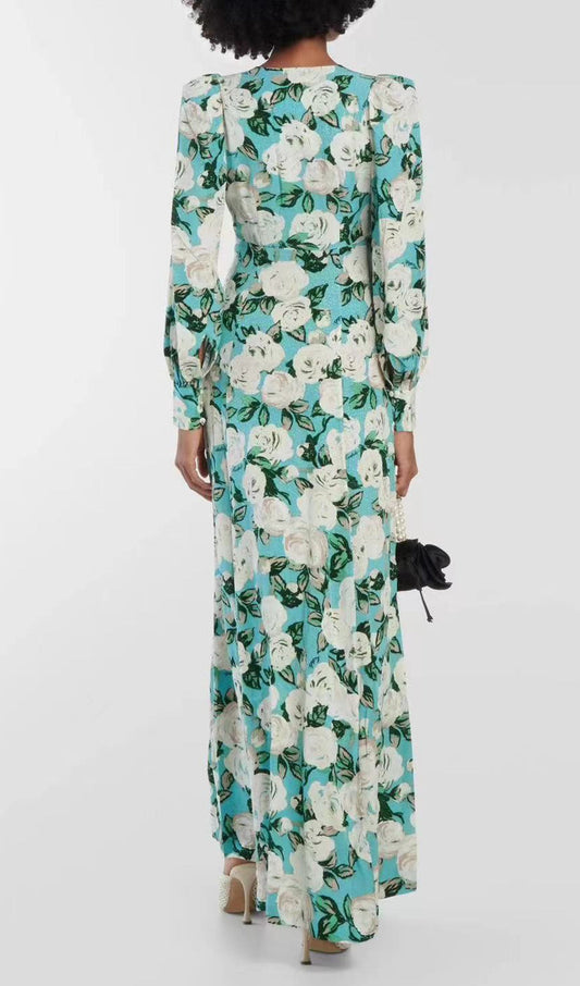 27% İndirimÇiçekli Uzun Kollu V Yaka A Line Maxi Elbise