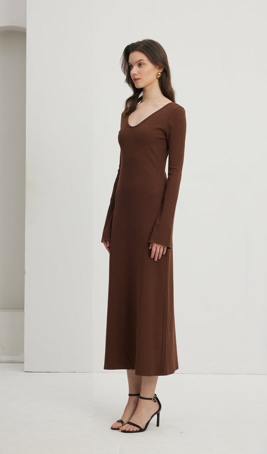 27% İndirimDüz Örme İçi Boş Maksi Elbise