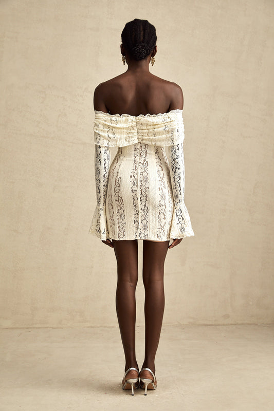 Élodie Beyaz Fiyonk Detaylı Süslemeli Mini Elbise