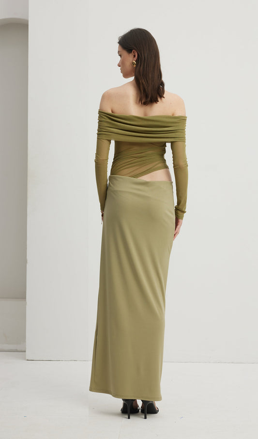 26% İndirimKapalı Omuz Şeffaf Maksi Örgü Yeşil