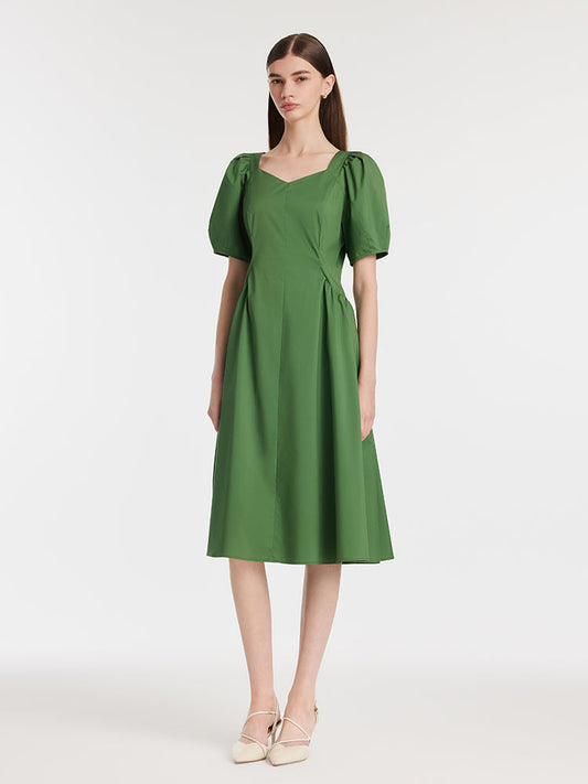 30% İndirimKare Yaka Puf Kollu Kadın Midi Spor Yeşil Elbise