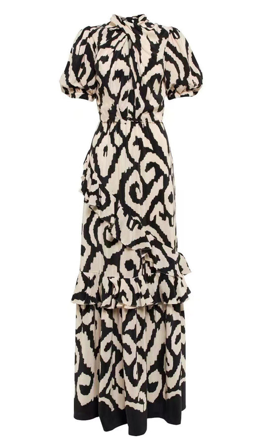 27% İndirimKısa Kollu Ruffle Fit ve Flare Maksi Elbise