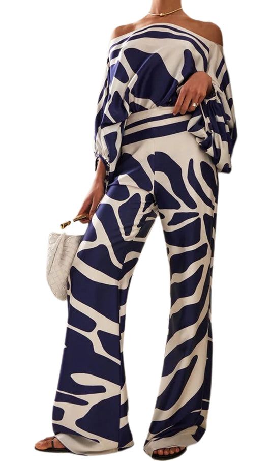 Kıyafetler Soğuk Omuz İki Parça Bluz ve Pantolon Takımı