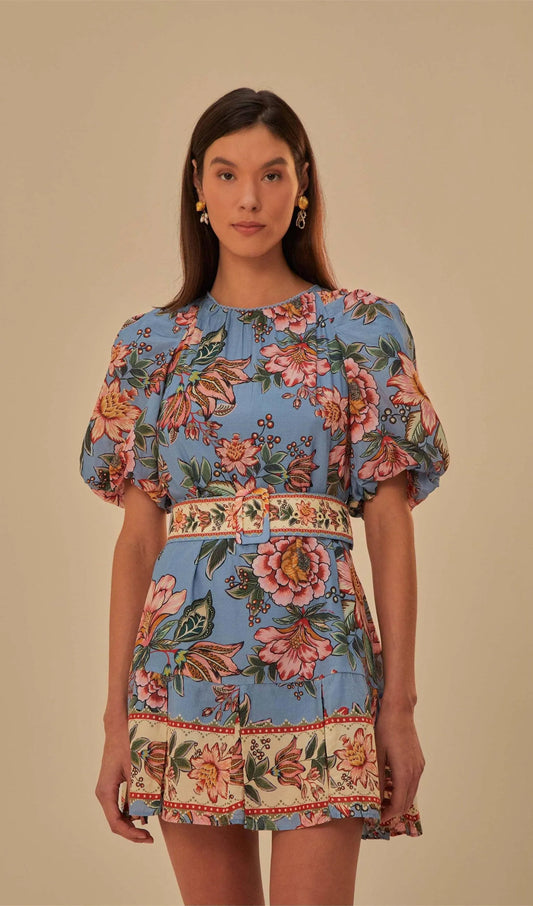 28% İndirimKısa Kollu Kapalı Omuz Çiçekli Mini Elbise