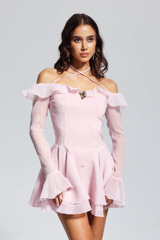 28% İndirimMaude Kapalı Omuz Fırfırlı Mini Elbise
