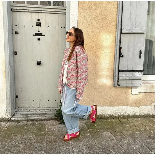 Moda Baskılı Bol Günlük Hırka Kısa Kapitone Pamuklu Ceket
