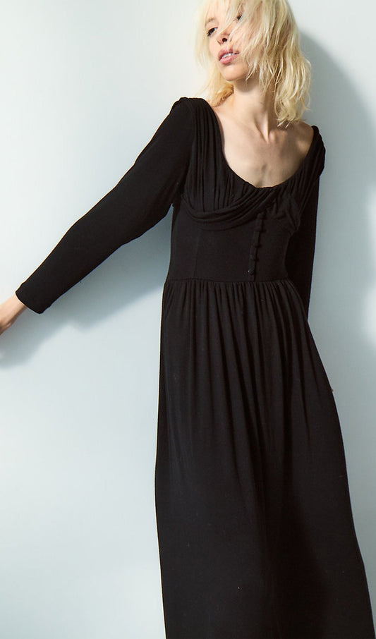 22% İndirimAnneke Kapalı Omuz Ruch Maksi Elbise Siyah