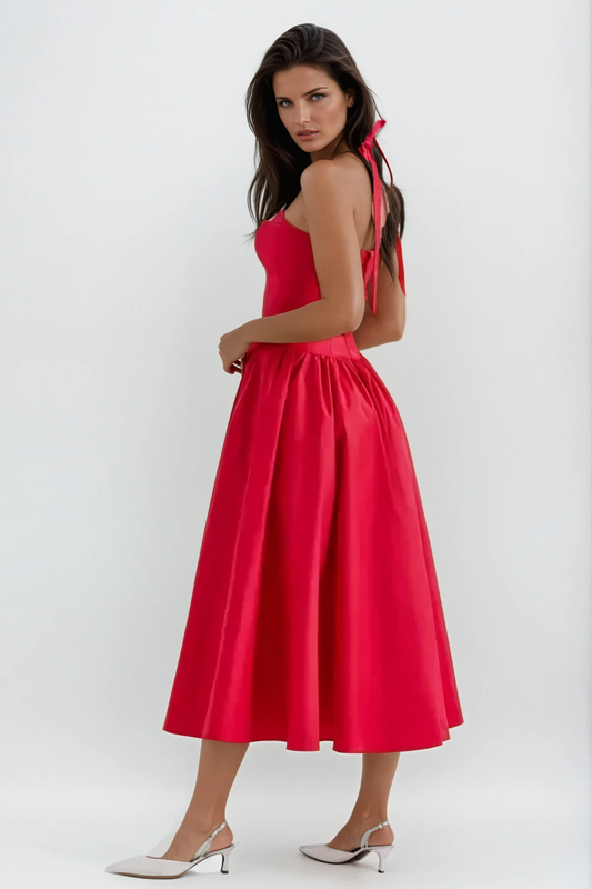 Annlea Halter Yaka Bodycon Fırfırlı Maksi Elbise Kırmızı