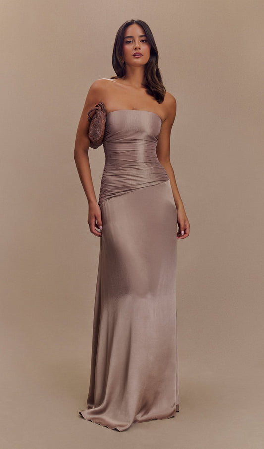 30% İndirimStraplez Korse Dökümlü Saten Maxi Elbise