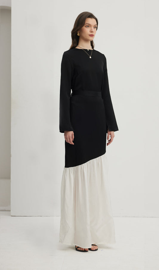 32% İndirimAsimetrik Siyah/Beyaz Colorblock Maksi Elbise