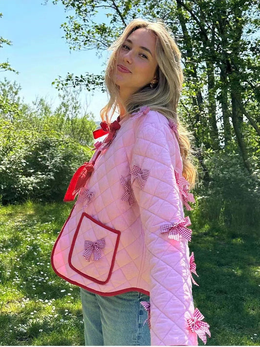 28% İndirimBağcıklı Patchwork Kapitone Ceket