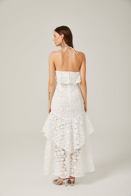 25% İndirimSancia beyaz fırfırlı güpür dantel Maxi elbise