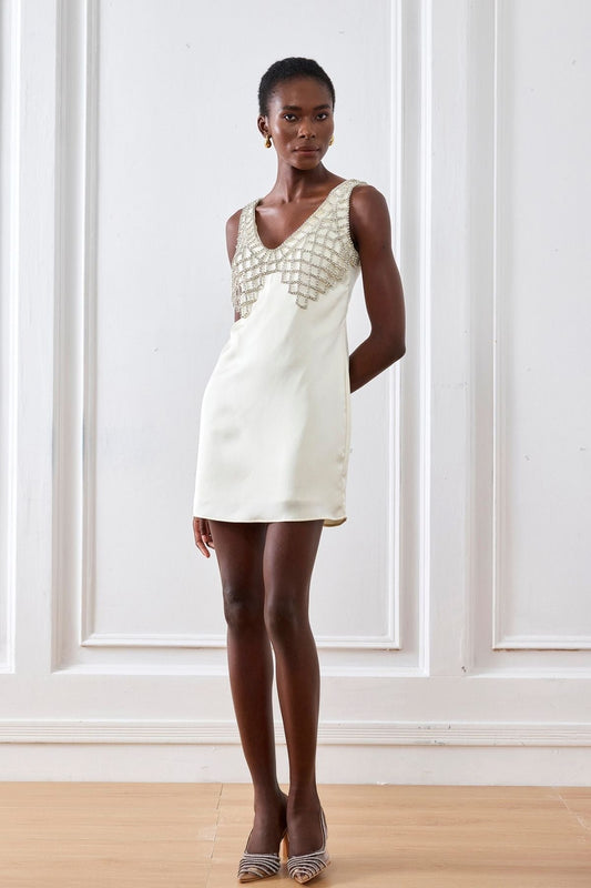 32% İndirimLedini V Yaka Kristal Mini Elbise Beyaz