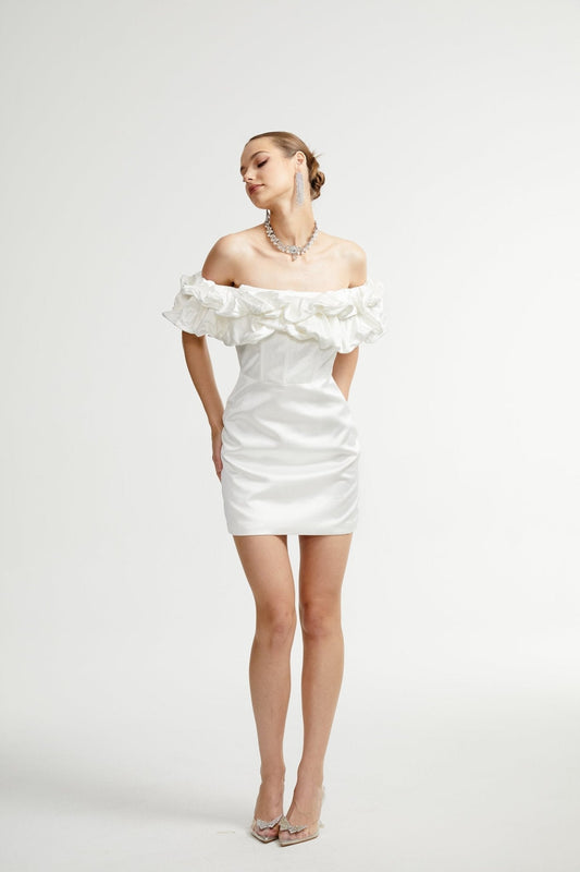 Élodie Beyaz Fiyonk Detaylı Süslemeli Mini Elbise