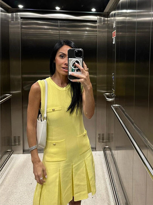 27% İndirimAsimetrik Düğmeli Kolsuz Mini Elbise