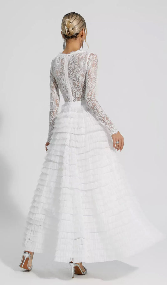 25% İndirimUzun Kollu Dantel Örgü Midi Katlı Elbise