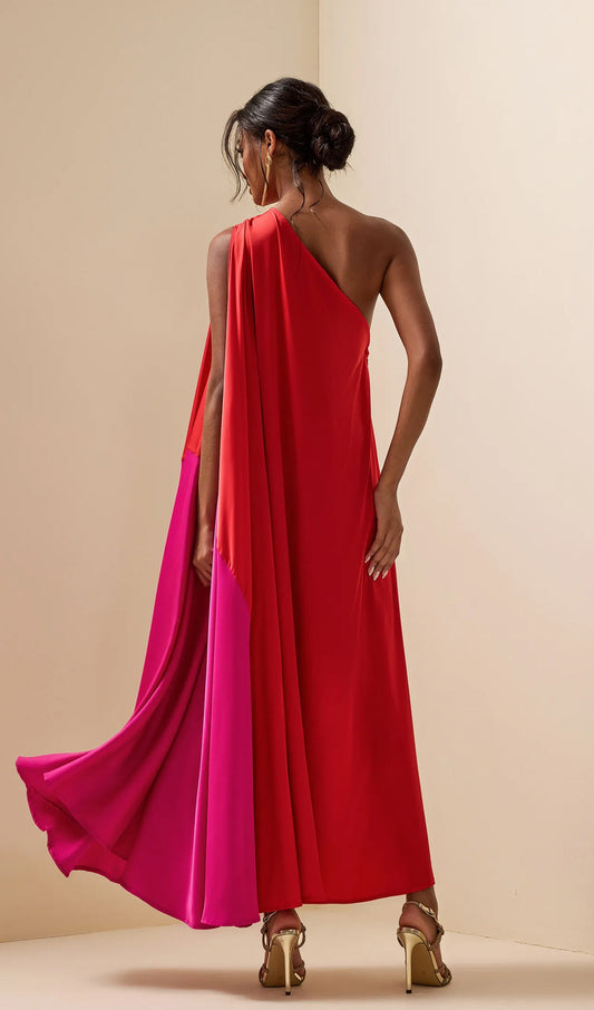 27% İndirimRenk Bloklu Saten Maksi Elbise