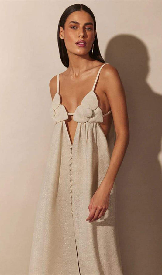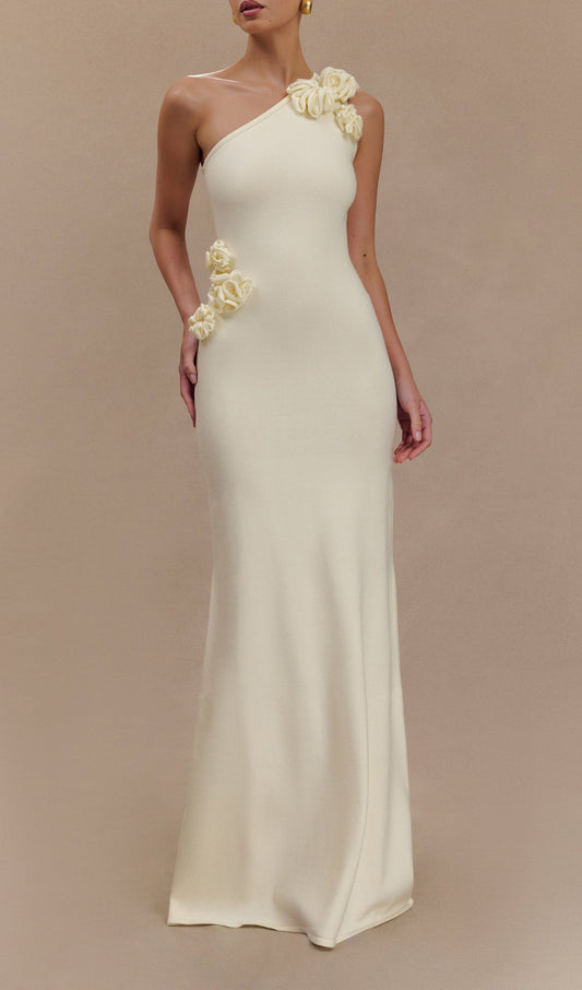 28% İndirimTek Omuz Çiçekli Örgü Maksi Elbise - Fildişi