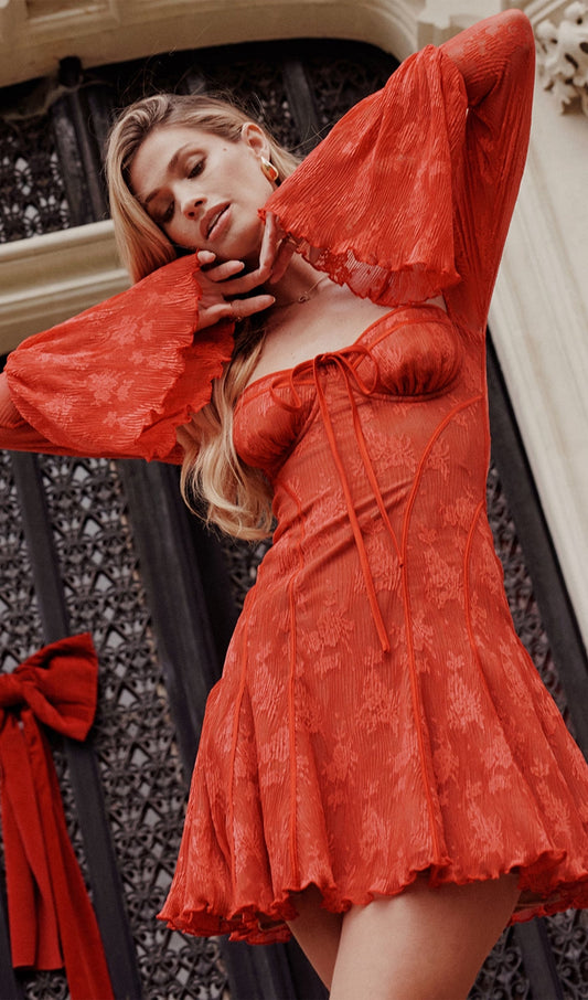 30% İndirimKavita Kırmızı Dantel Mini Elbise