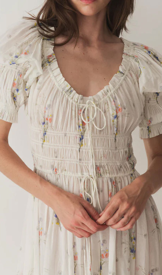 24% İndirimÇiçekli Pamuklu Kısa Kollu Midi Elbise