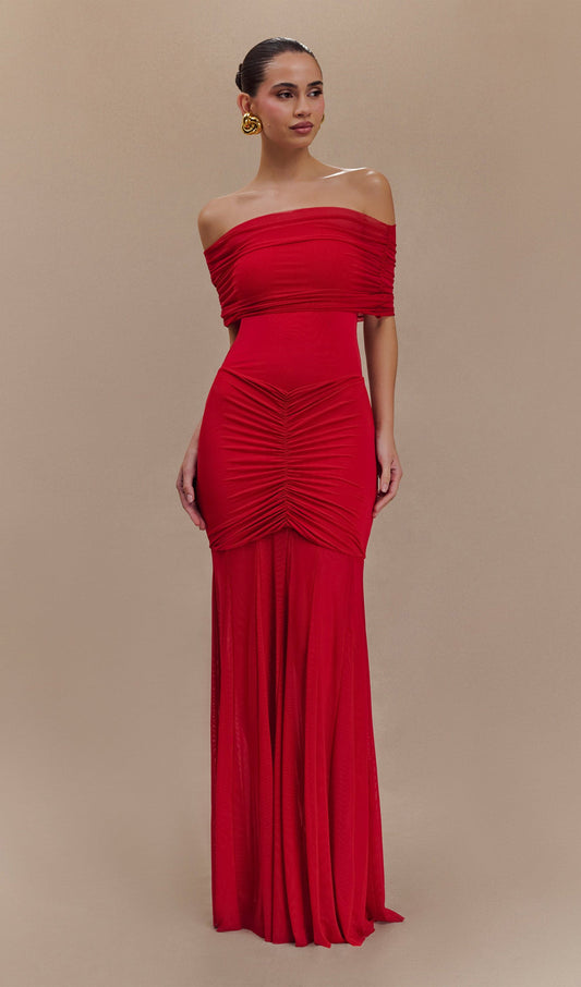 28% İndirimSlinky Kapalı Omuz Maksi Elbise - Kırmızı