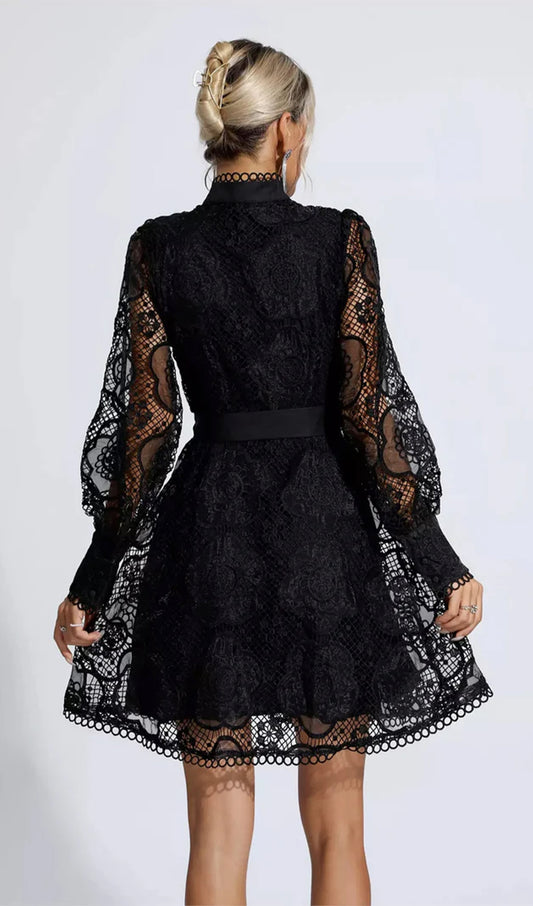 30% İndirimKavita Siyah Dantel Mini Elbise