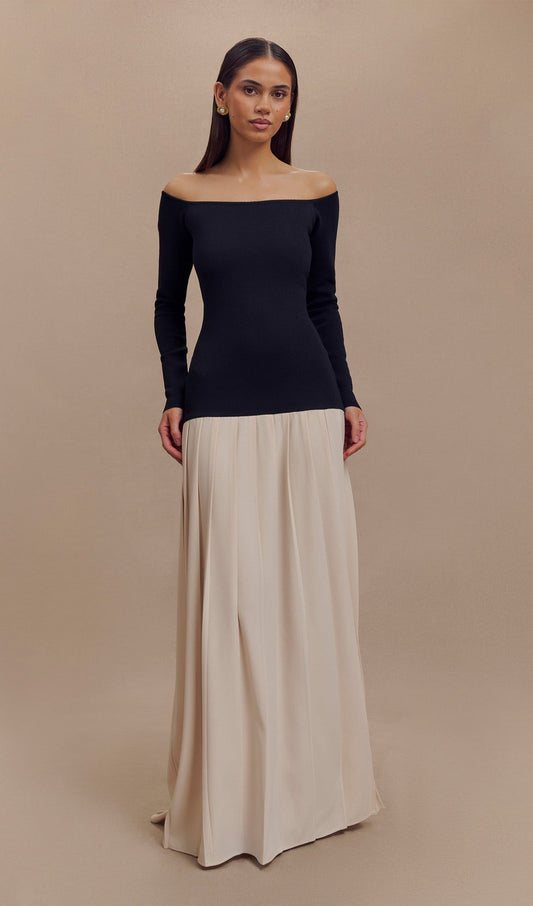32% İndirimAsimetrik Siyah/Beyaz Colorblock Maksi Elbise