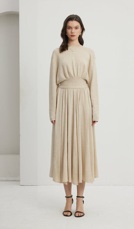 23% İndirimPileli Büzgülü Yaka Maksi Elbise