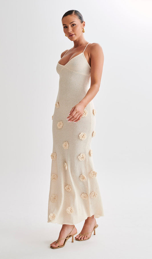 29% İndirimÇiçekli Örgü Maksi Elbise-Koyu Beyaz