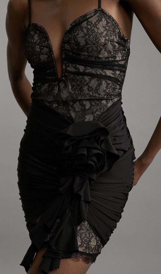 29% İndirimDantel Jersey Krep Dantelli Mini Elbise