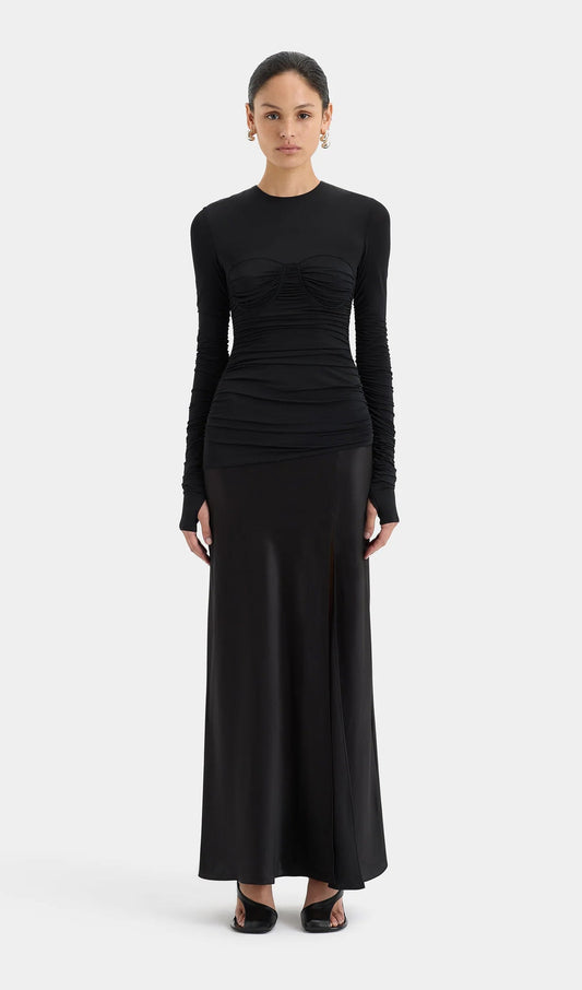 28% İndirimDrapeli Jersey ve Saten Maksi Elbise-Siyah