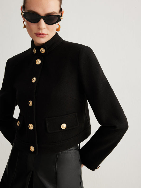 Kadın Yün Yuvarlak Yaka Metal Düğmeli Ceket