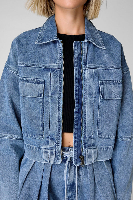 36% İndirimDahlia Cepli Kot Ceket-Pembe