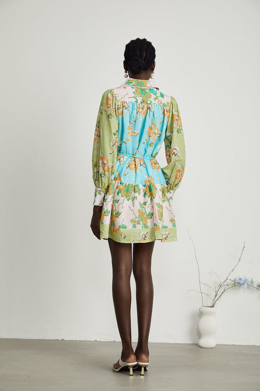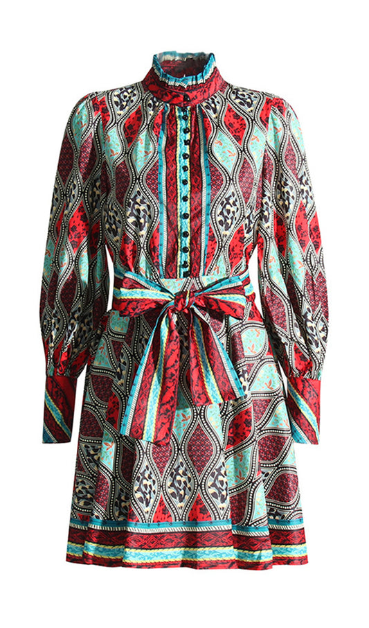 30% İndirimBaskılı Fener Kollu Mini Elbise