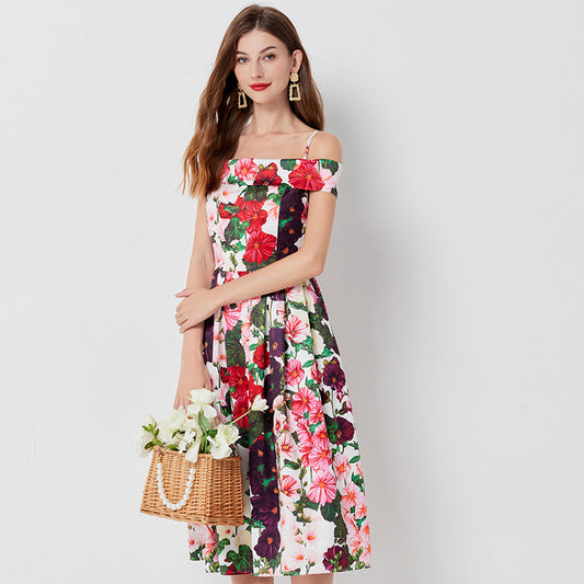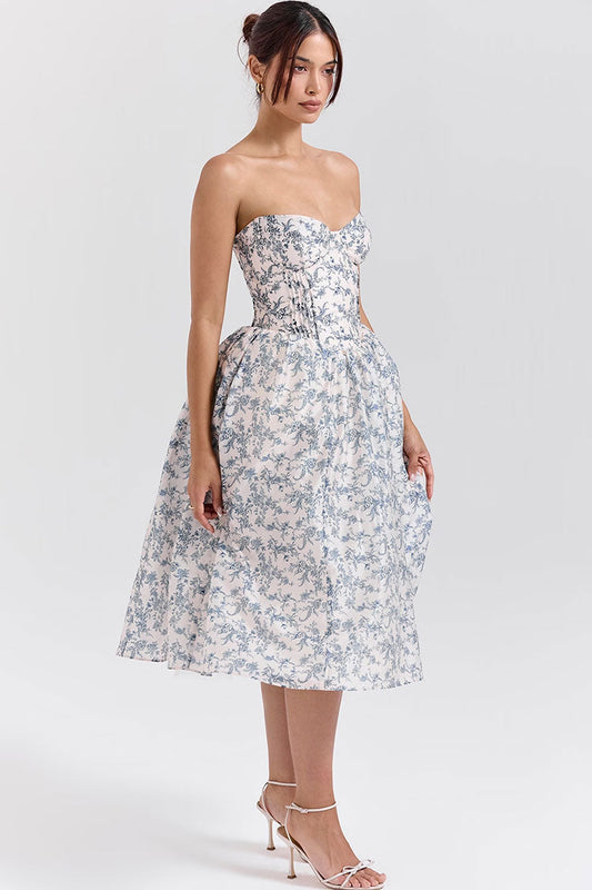 32% İndirimFransız Stili Çiçek Desenli Straplez Midi Elbise