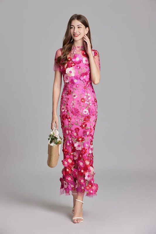 26% İndirimRosalia 3D Çiçek Dantel Midi Elbise