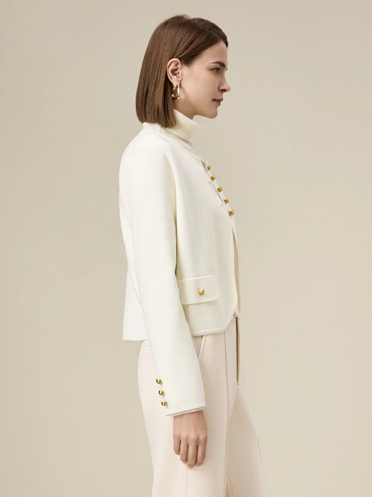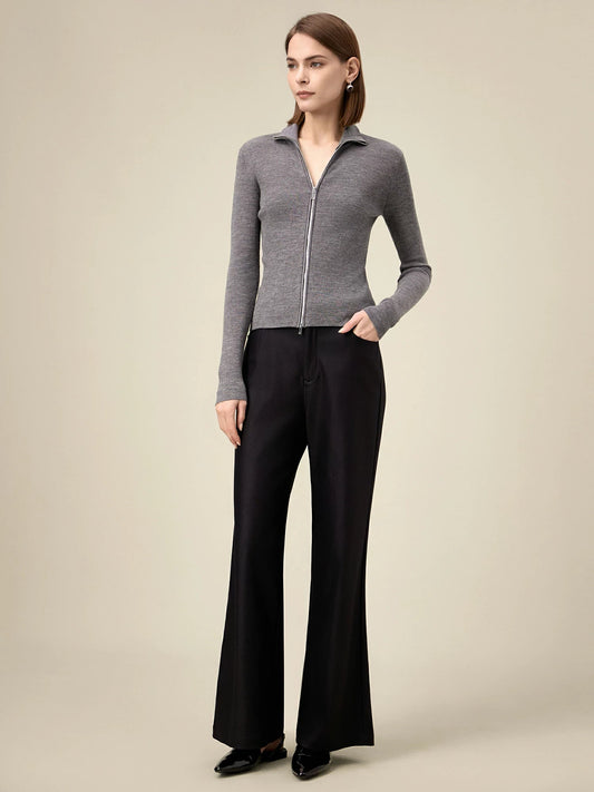 27% İndirimYün Dik Yaka Çift Fermuarlı %100 Örgü Ceket