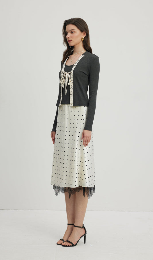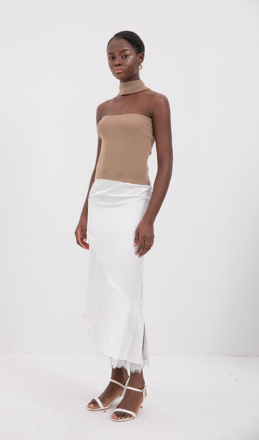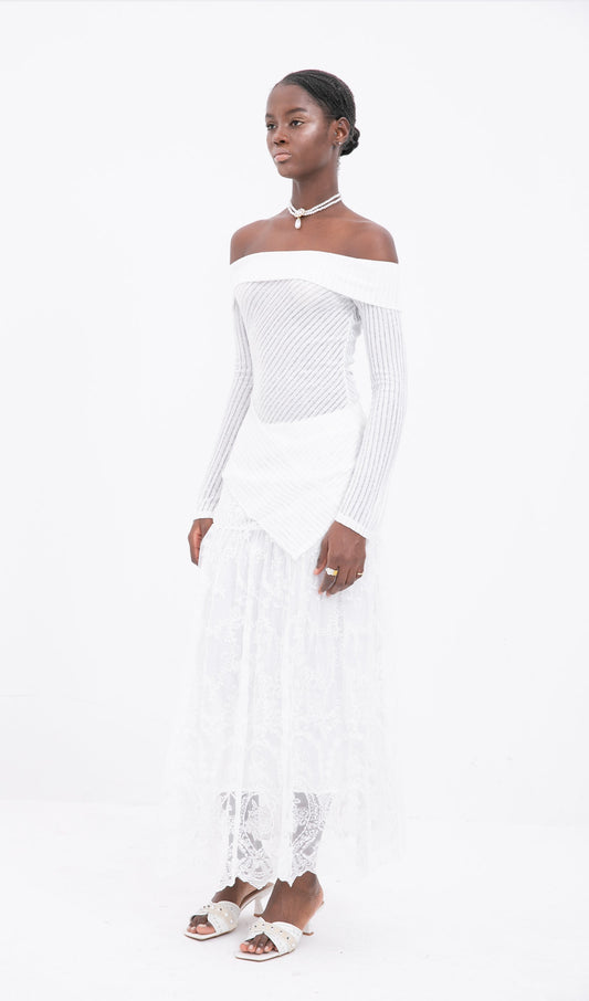 Almira Uzun Kollu Çiçekli Bandaj Etek Seti, Beyaz