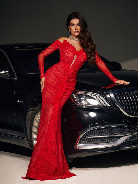 Capella Kapalı Omuz Dantel Balık Etek Maksi Elbise