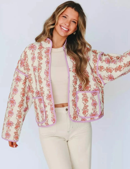 31% İndirimÇiçek Desenli Bol Kapitone jacket