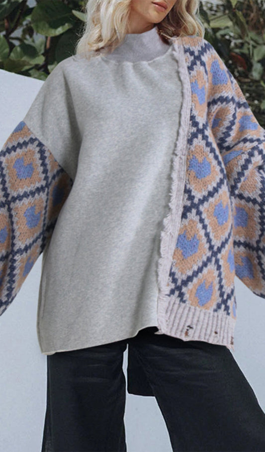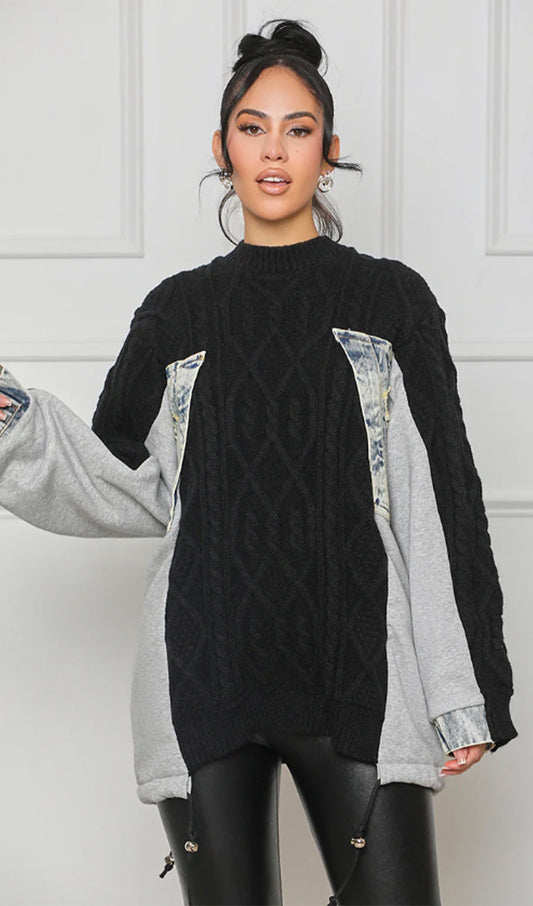 28% İndirimPatchwork Denim Örgü Kazak Üst