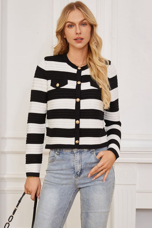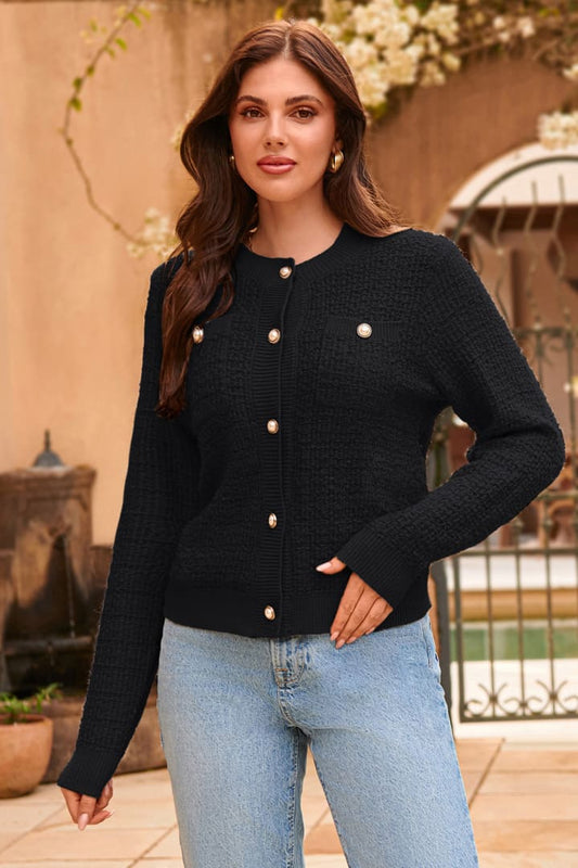 Önü Açık Düğmeli Uzun Kollu Doku Örgü Kazak Hırka