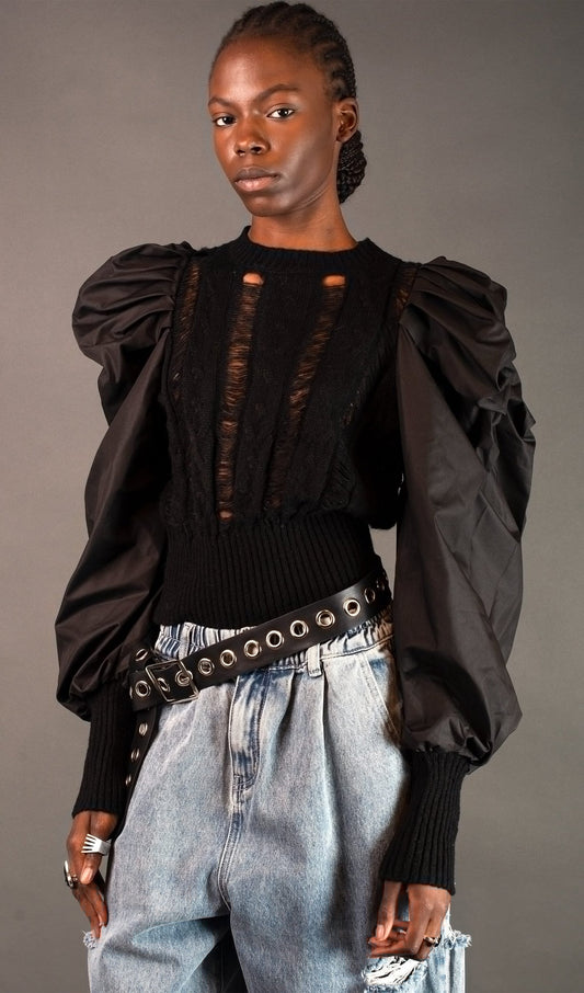 28% İndirimSıkıntılı Puf Kollu Örgü Kazak Üst