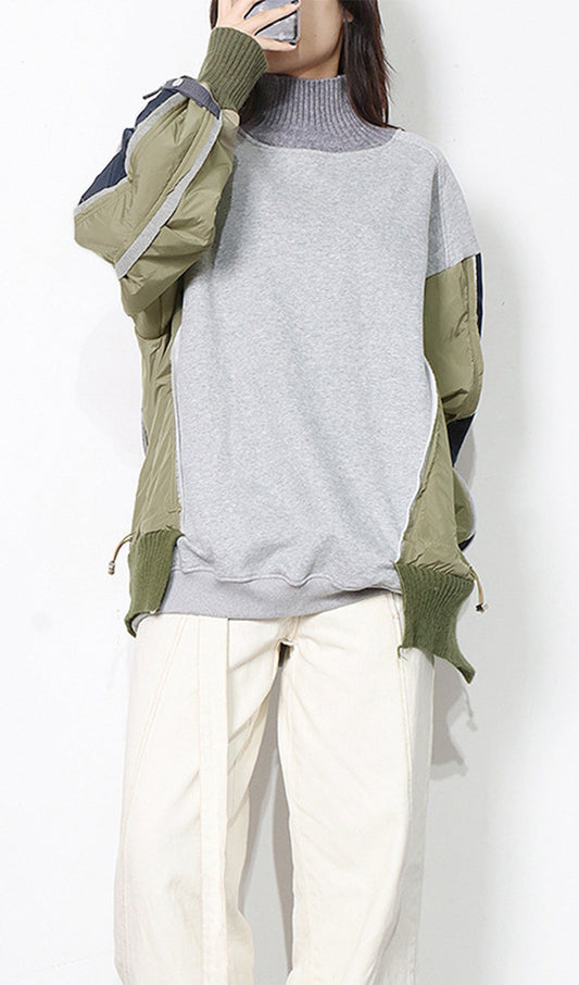 27% İndirimBalıkçı Yaka Patchwork Sweatshirt Kazak Üst
