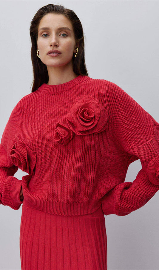 27% İndirimÖrgü Çiçekli İçi Boş Kazak
