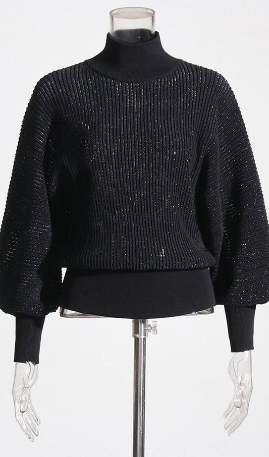 28% İndirimYüksek Yaka Rhinestones Metalik İpli Örgü Kazak