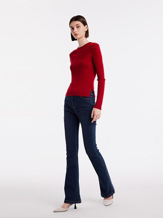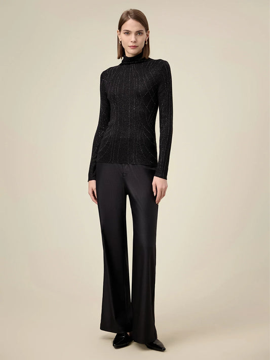 29% İndirimYün Balıkçı Yaka Uzun Kollu Rhinestone Kazak
